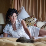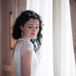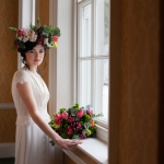 Simple, modern gowns and an impactful floral headdress gave a vigorous look – yet remained a feeling of elegance. The dress was relaxed and in line, and supplied from Pirouette the Collection; we wanted the impact to be made with the headpiece. Florist Philip from Philip Taylor Corps’ array of grasses, blousy blooms and spring buds were used to produce the flower garland by Steven from Steven and Laurent hairdressers. The loose up-do was full of bounce and curls under the crown of flowers. Makeup by Genevieve Satha was fresh and vibrant, but with a softness to suit a blushing bride.