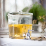 Embroidered linen echoed the abundant zesty yellows and bright flowers, and was used to make the table cover. Handmade seed packets acted as place names, and favours made by Amy at Blue Fizz Events added a personal touch. To give a wild botanical feel, foliage and flowers were added to the chairs in the Orangery room, where the large glass French windows linked the stunning gardens and grounds indoors.